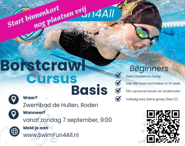Laat je innerlijke zwemmer vrij met de Beginners cursus (10 weken) Borstcrawl bij Sportcentrum De Hullen in Roden!