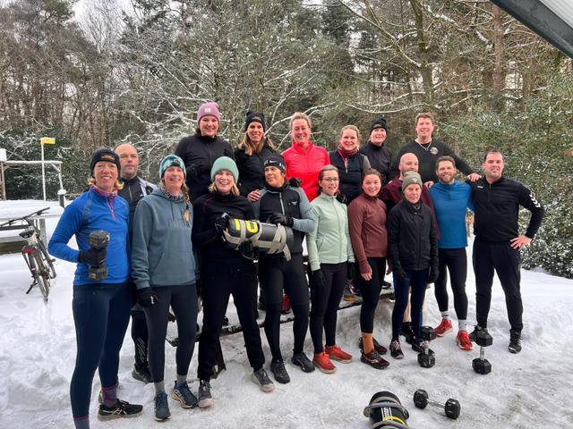 Mijn oma en moeder zongen het vaak als we aan het wandelen waren. Nu vriezen mijn tenen er bijna af maar toch heb ik mij aangemeld voor de bootcamptraining van Qtime. Voor de nieuwjaarstraining gaan we naar de Zwerfsteen. Er druppelen nog 16 andere sporters binnen. De leeftijd ligt meestal tussen eind 20 en dik 60 jaar, mannen en vrouwen. Iedereen doet mee op zijn of haar eigen niveau. Deze keer staat er een partner AMRAP op het whiteboard, 3 jaar geleden wist ik niet wat de oefeningen en afkortingen betekenden en nu weet ik dat een whiteboard meestal een pittige training betekent en ken ik bijna alle oefeningen. Lekker de sneeuw in en na een warming up kiest iedereen zijn eigen gewichten en werken we drie keer tien minuten. Al snel gaan er vestjes, jassen en mutsen uit omdat we op temperatuur zijn. Na een uur maken we een leuke groepsfoto en gaan naar binnen voor een nieuwjaarslunch. Daarna zeggen we elkaar gedag en stappen de meesten op de fiets naar huis. Ondanks de kou een heerlijke training, op naar de training van dinsdag wanneer we weer met verlichting en droge voeten op het hockeyveld in Roden trainen. Heb je zin om eens aan te sluiten bij deze gezellige groep? Stuur dan een berichtje naar info@qtimeadventures.nl.