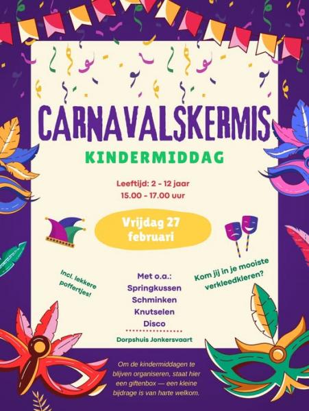 Kindermiddag: carnavalskermis! Voor kinderen van inwoners van Jonkersvaart en leden van EMM