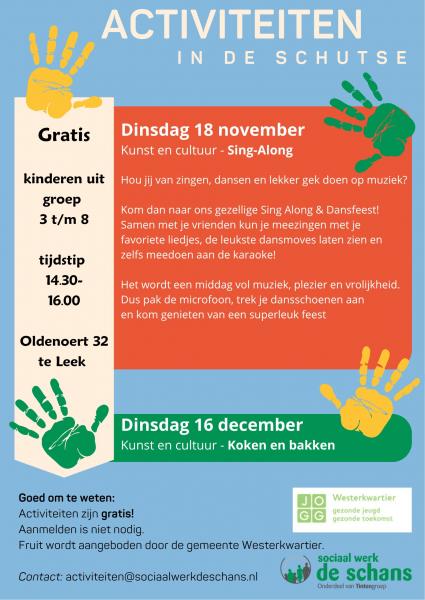 Hou jij van zingen, dansen en lekker gek doen op muziek? Kom dan naar ons gezellige Sing Along & Dansfeest! Samen met je vrienden kun je meezingen met je favoriete liedjes, de leukste dansmoves laten zien en zelfs meedoen aan de karaoke! Het wordt een middag vol muziek, plezier en vrolijkheid. Dus pak de microfoon, trek je dansschoenen aan en kom genieten van een superleuk feest.
