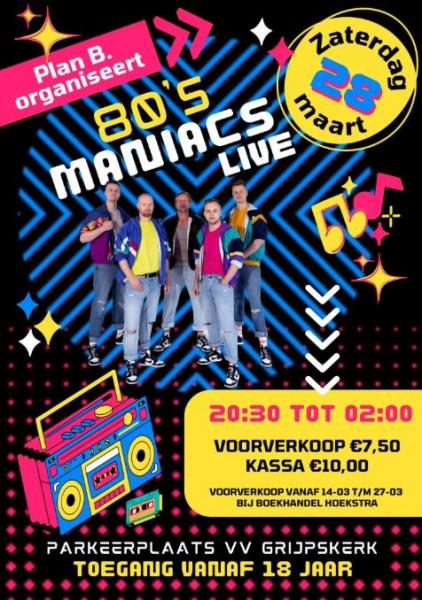 The 80’s Maniacs brengen met een liveoptreden bekende hits uit de jaren tachtig, waarmee zij zorgen voor een feestelijke sfeer in de tent.