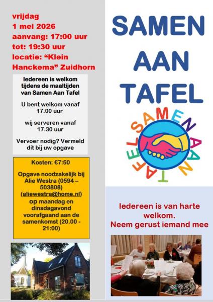Iedereen is welkom tijdens de maaltijden van Samen Aan Tafel; alleengaanden maar ook (bevriende) stellen.