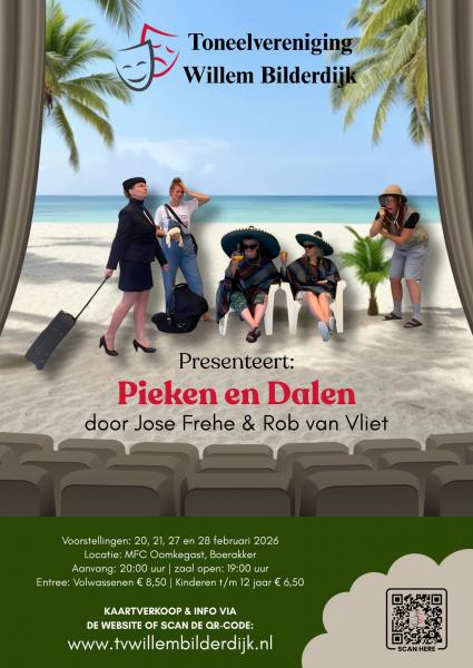 "Pieken en dalen" Een voorstelling vol humor en verrassingen! Jaarlijkse voorstelling van toneelvereniging Willem Bilderdijk.